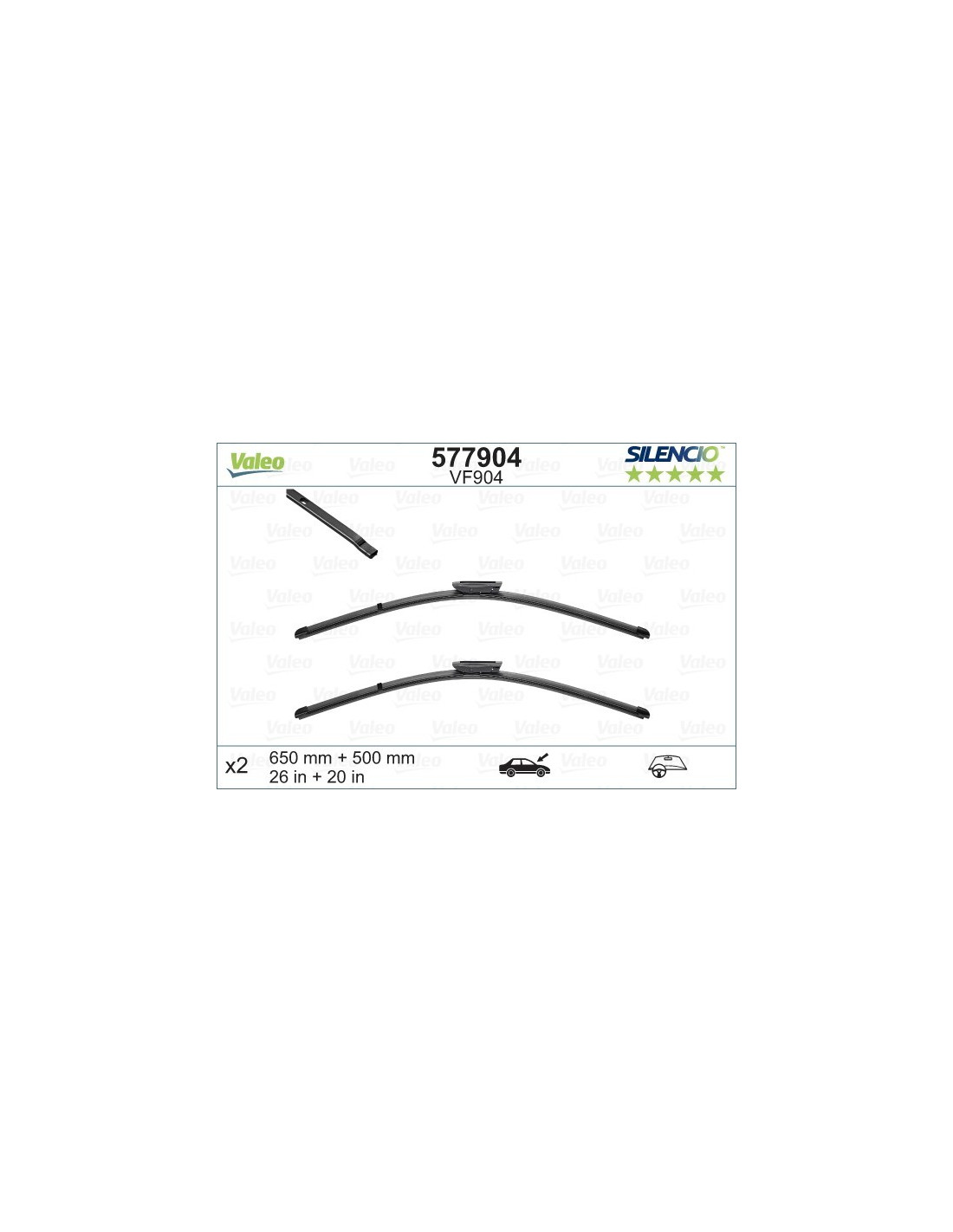Torkarbladsats Valeo Silencio VF904. Kod: VF904, Längd: 650/500.